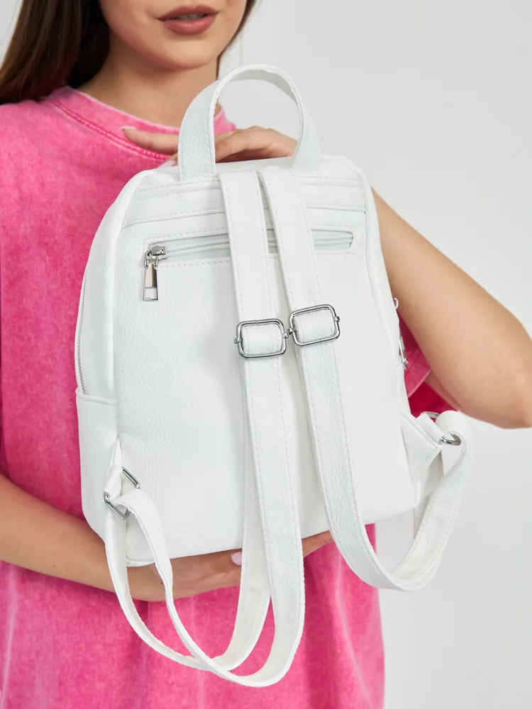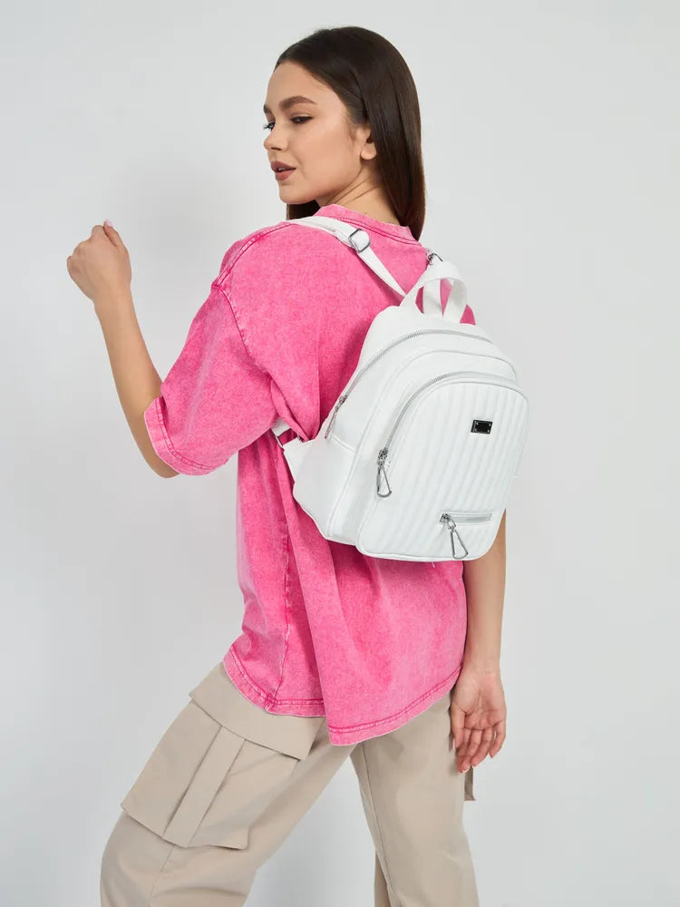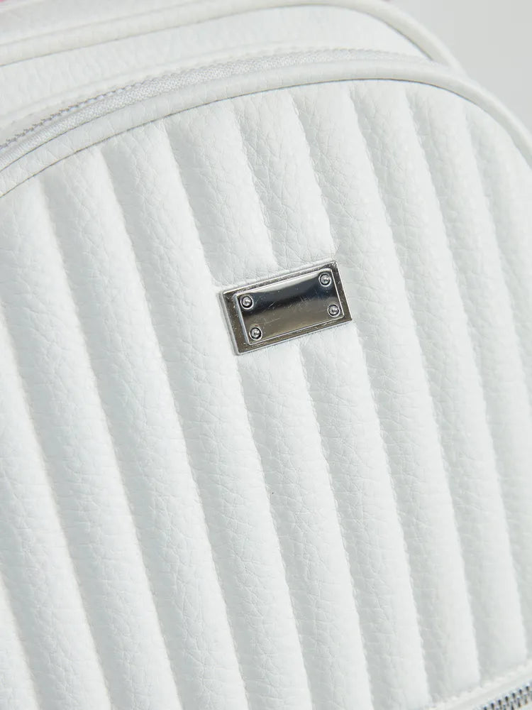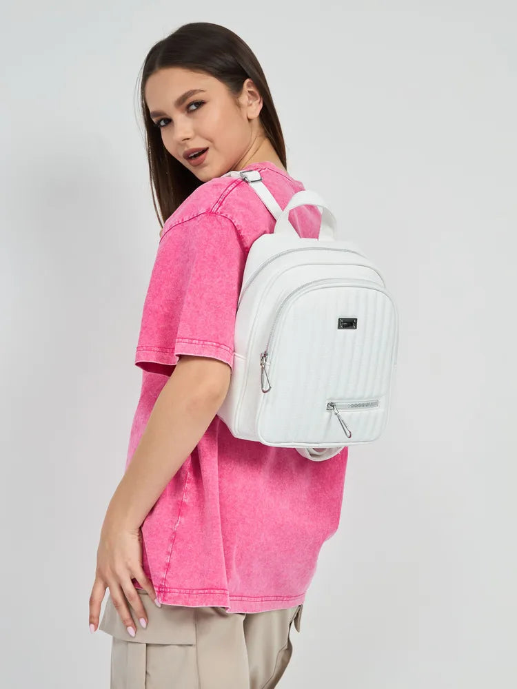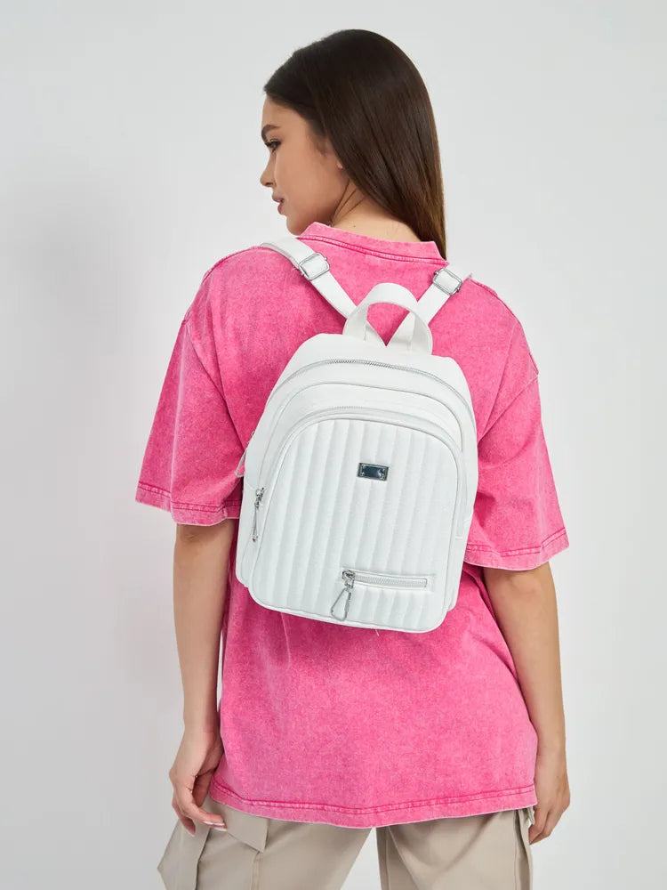 Opgrader din accessory-kollektion med denne chikke og urbane rygsæk i en frisk struktureret hvid nuance. Denne rygsæk kombinerer funktionalitet med et stilfuldt udseende, og er fremstillet af holdbart materiale med fine tekstur detaljer. Med en kompakt, men rummelig konstruktion, inkluderer den flere lommer med lynlås, som sikrer dine ejendele og holder dig organiseret på farten. Justerbare skulderstropper tilbyder komfortabel bærbarhed, hvilket gør den til en ideel ledsager for daglige eventyr eller weekendudflugter.