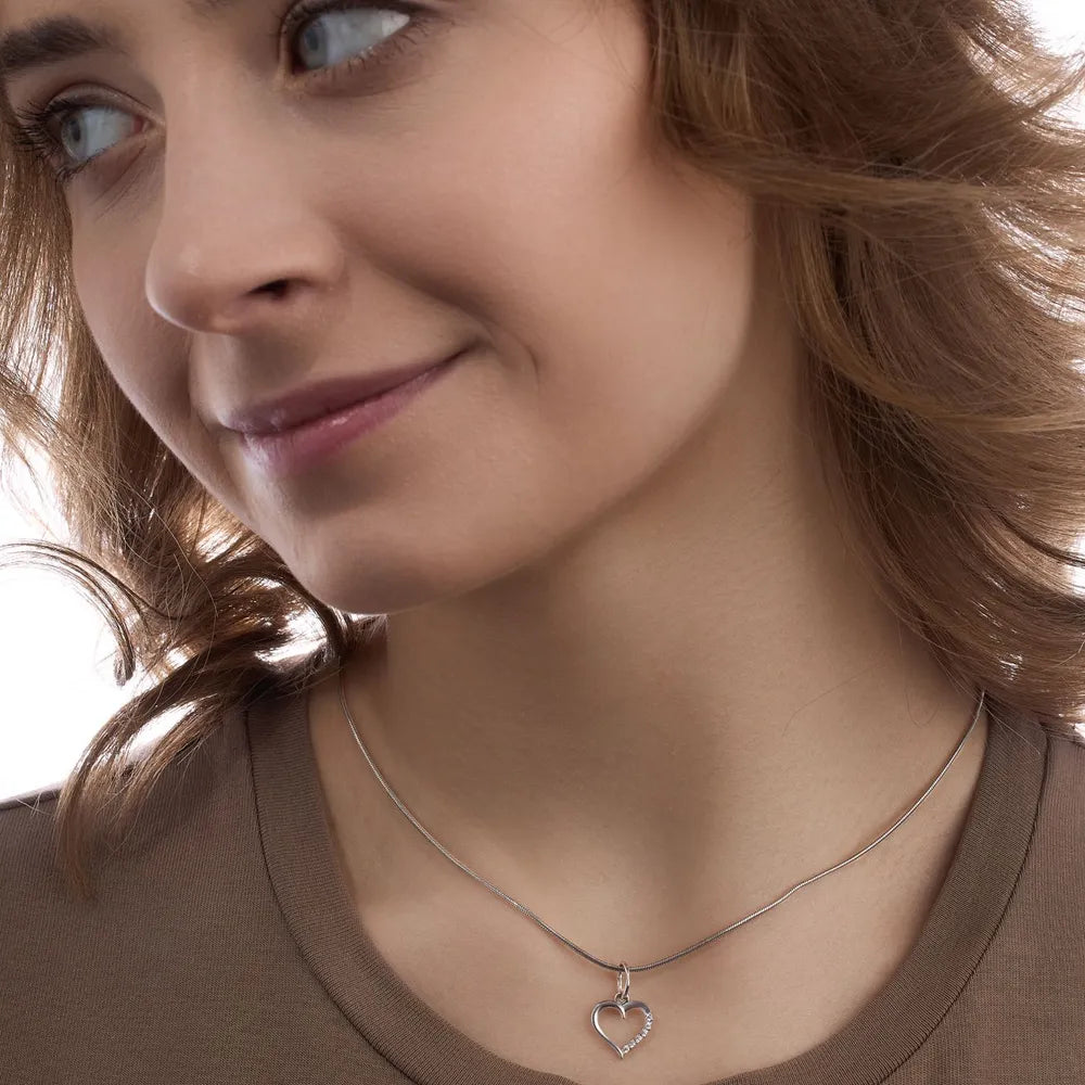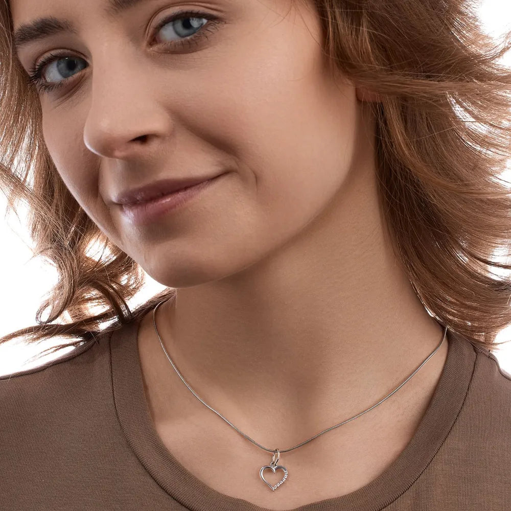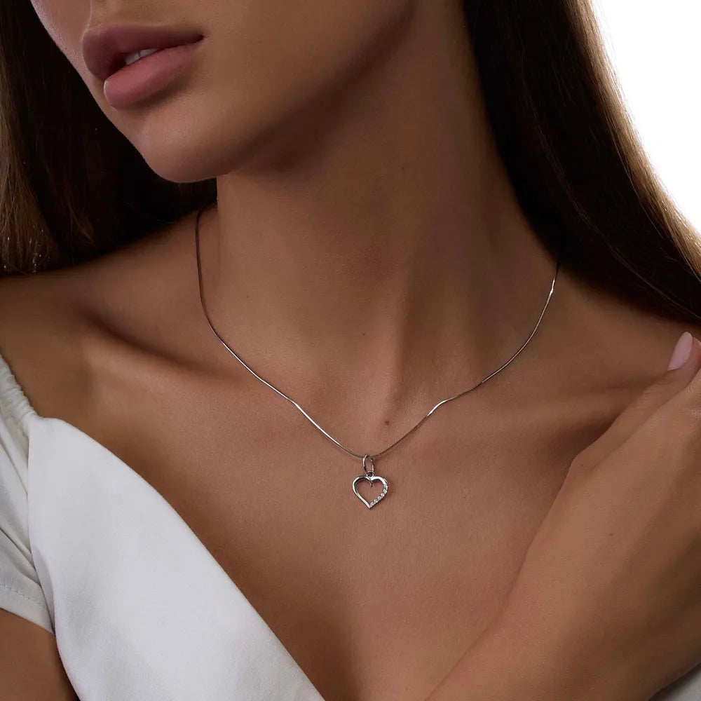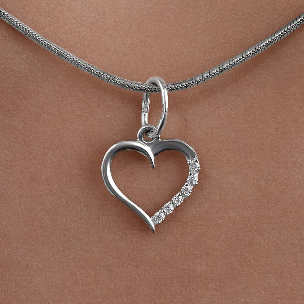 Dette fine hjertevedhæng er det perfekte symbol på kærlighed og elegance. Fremstillet af højkvalitets metal med en poleret finish, har dette vedhæng en delikat åben hjerteform, der er accentueret med funklende krystaller på den ene side, hvilket giver en subtil glans. Dets tidløse design gør det til en alsidig tilføjelse til enhver smykkesamling, ideelt til både daglig brug og særlige anledninger. Dette vedhæng kan nemt koordineres med et hvilket som helst outfit og er sikker på at tilføje en berøring af romantik og raffinement.