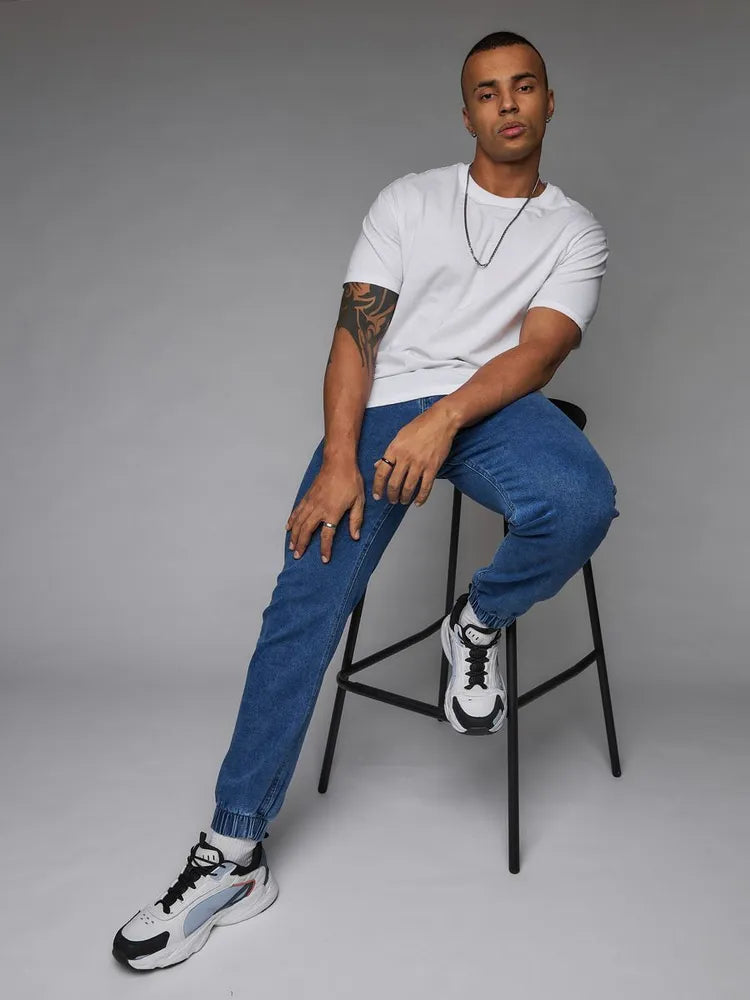 Giv dit afslappede look et løft med disse joggingbukser, der kombinerer komfort med et klassisk denim-udseende.