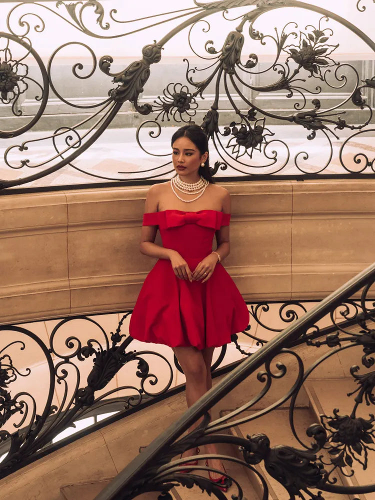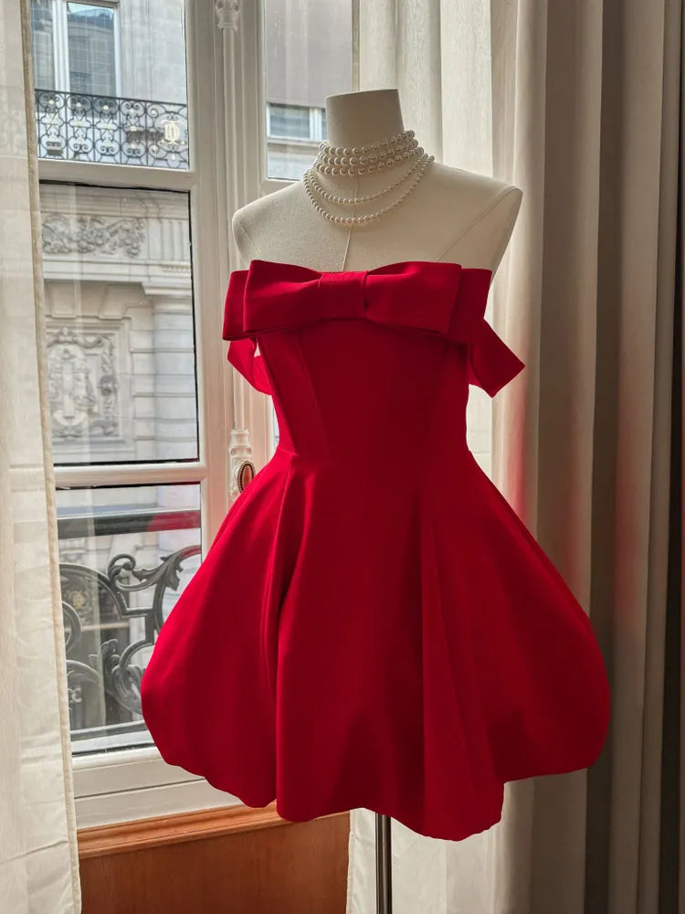 Lad din indre glamour skinne igennem med denne festlige røde cocktailkjole, som er en sand hyldest til femininitet og elegance. Kjolens iøjnefaldende farve og dramatiske sløjfeudskæring ved brystet gør den til et statement-stykke til enhver særlig lejlighed. Den udstråler en vintage-charme med sin voluminøse A-linjede nederdel, der giver en smuk silhuet. Perfekt til enhver fest, denne kjole er designet til at vende hoveder og sikre, at du føler dig fantastisk.