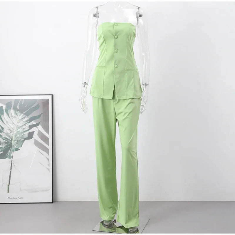Moderne Ensfarvede Buksedragter med Dobbelt Knaprække