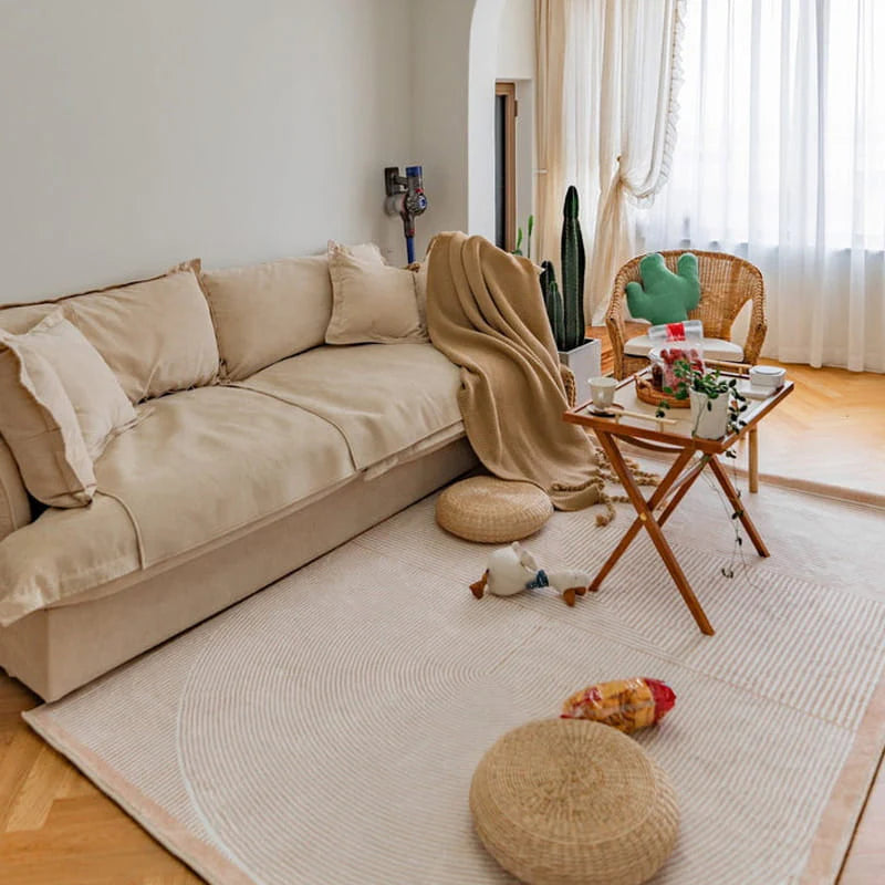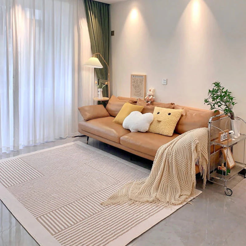 Denne luksuriøse gulvmåtte er designet med et rustikt, enkelt udtryk og en elegant Jacquard-teknik, der tilføjer både romantik og komfort til dit hjem. Den glatte og behagelige tekstur sikrer en blød og luksuriøs følelse under fødderne.
