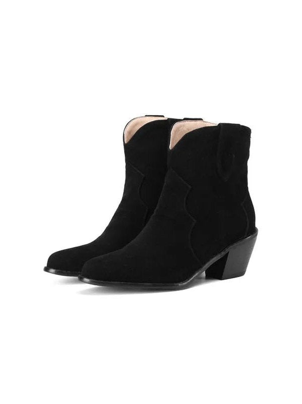 Fremstillet af førsteklasses ruskind, disse støvler præsenterer en klassisk spids tå og en subtil blokhæl, som tilfører et strejf af elegance til dit skridt. Det tidløse design sikrer at disse støvler vil være en go-to i din garderobe.