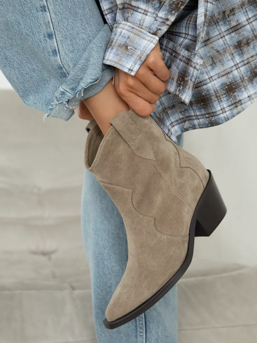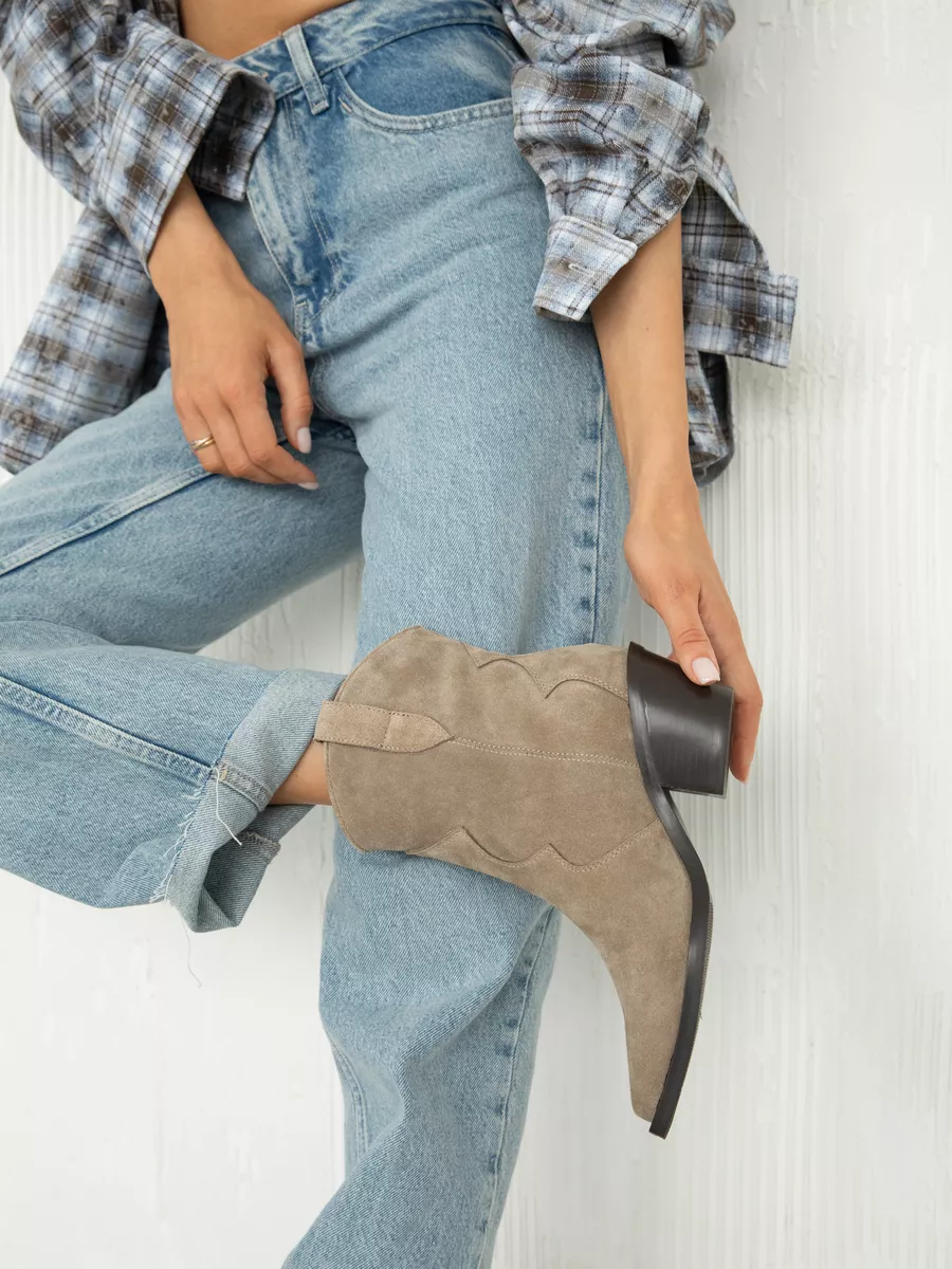 Taupe Tidløs Western-inspireret Ankelstøvler